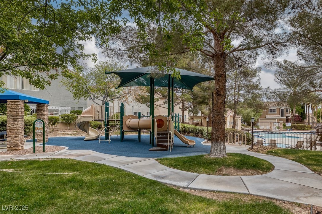 Priced to sell! Welcome to Wellington Park - where comfort meets convenience in the heart of Peccole Ranch. This spacious 4-bedroom, 3-bathroom home is ideally situated on a premium lot that backs directly onto the community greenbelt and serene walking trails--offering added privacy and natural views rarely found in Las Vegas. Step outside to your private backyard retreat, complete with a sparkling pool and spa combo, relaxing waterfall feature, and plenty of space to unwind or entertain. Inside, the layout offers flexibility for modern living with generous room sizes and abundant natural light throughout. Located in a sought-after gated neighborhood, residents enjoy access to exclusive community amenities including a pool, spa, park, playground, and scenic paths--all just minutes from shopping, dining, and Summerlin's best offerings. A standout opportunity in one of the area's most established communities--don't miss it! Buyer and buyer's agent to verify all information.